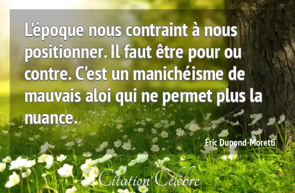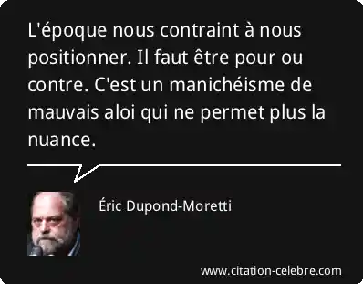 L'époque nous contraint à nous positionner. Il faut être pour ou contre. C'est un manichéisme de mauvais aloi qui ne permet plus la nuance.