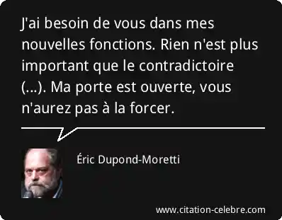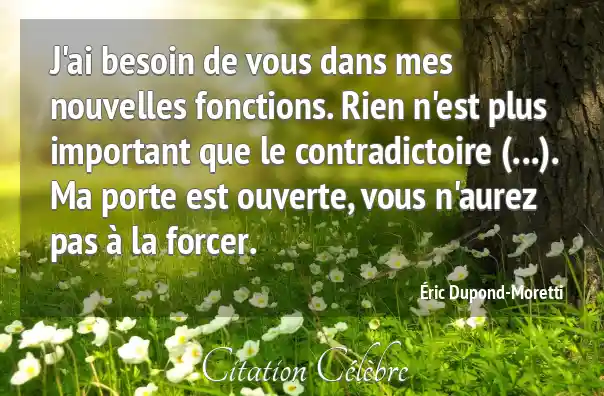 J'ai besoin de vous dans mes nouvelles fonctions. Rien n'est plus important que le contradictoire (...). Ma porte est ouverte, vous n'aurez pas à la forcer.