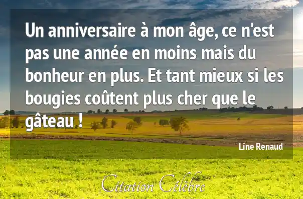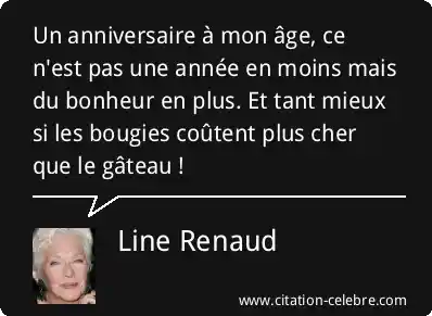Un anniversaire à mon âge, ce n'est pas une année en moins mais du bonheur en plus. Et tant mieux si les bougies coûtent plus cher que le gâteau !