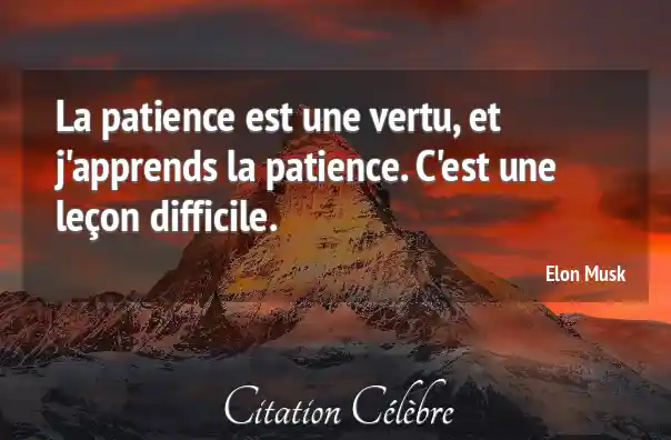 La patience est une vertu, et j'apprends la patience. C'est une leçon difficile.