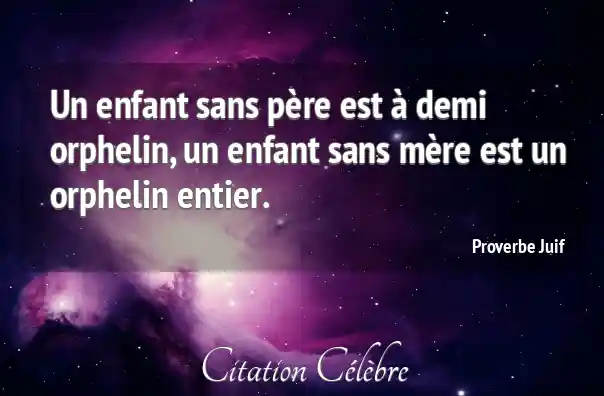 Un enfant sans père est à demi orphelin, un enfant sans mère est un orphelin entier.