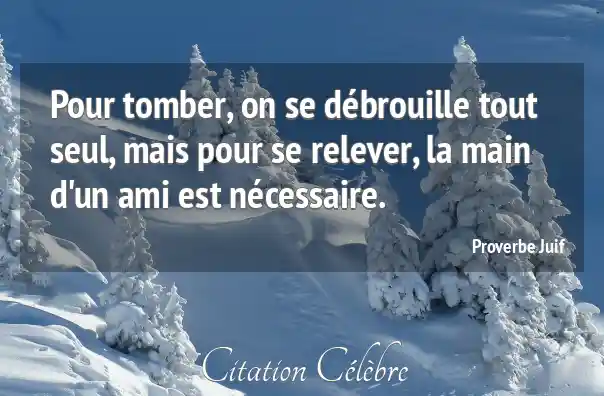 Proverbe  Juif Seul : Pour tomber, on se débrouille tout seul, mais pour se...