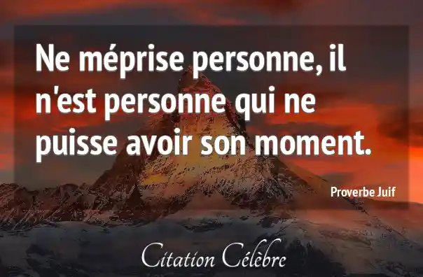 Ne méprise personne, il n'est personne qui ne puisse avoir son moment.