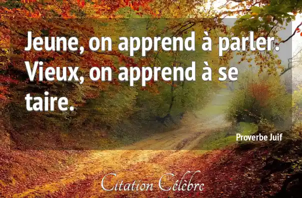 Jeune, on apprend à parler. Vieux, on apprend à se taire.