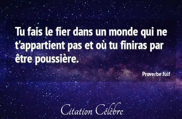Tu fais le fier dans un monde qui ne t'appartient pas et où tu finiras par être poussière.