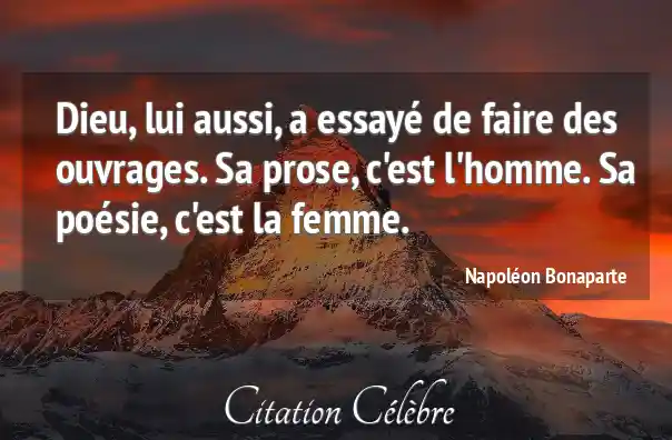 Dieu, lui aussi, a essayé de faire des ouvrages. Sa prose, c'est l'homme. Sa poésie, c'est la femme.
