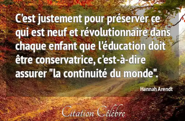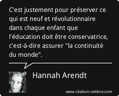 C'est justement pour préserver ce qui est neuf et révolutionnaire dans chaque enfant que l'éducation doit être conservatrice, c'est-à-dire assurer "la continuité du monde".