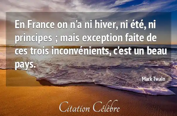 En France on n'a ni hiver, ni été, ni principes ; mais exception faite de ces trois inconvénients, c'est un beau pays.