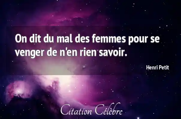 On dit du mal des femmes pour se venger de n'en rien savoir.