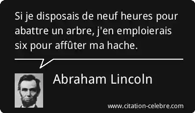 Si je disposais de neuf heures pour abattre un arbre, j'en emploierais six pour affûter ma hache.