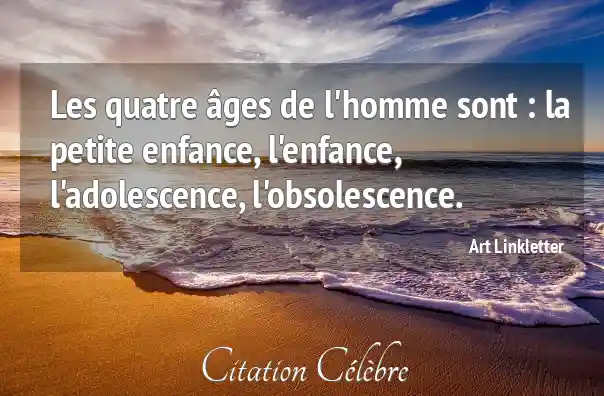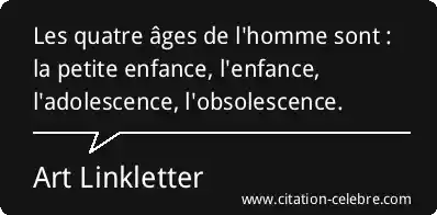 Les quatre âges de l'homme sont : la petite enfance, l'enfance, l'adolescence, l'obsolescence.