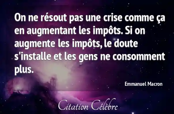 On ne résout pas une crise comme ça en augmentant les impôts. Si on augmente les impôts, le doute s'installe et les gens ne consomment plus.