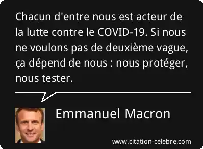Chacun d'entre nous est acteur de la lutte contre le COVID-19. Si nous ne voulons pas de deuxième vague, ça dépend de nous : nous protéger, nous tester.