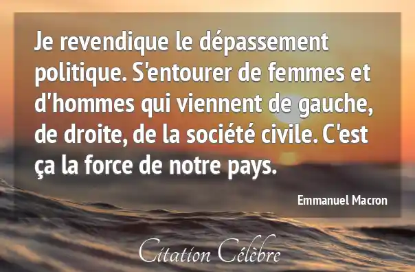 Je revendique le dépassement politique. S'entourer de femmes et d'hommes qui viennent de gauche, de droite, de la société civile. C'est ça la force de notre pays.