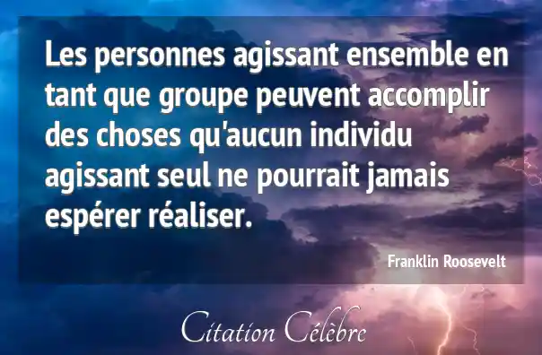 Les personnes agissant ensemble en tant que groupe peuvent accomplir des choses qu'aucun individu agissant seul ne pourrait jamais espérer réaliser.