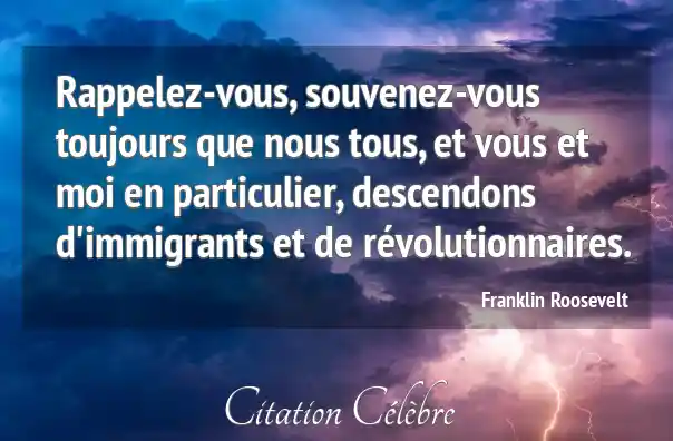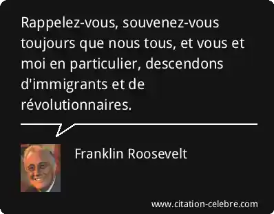 Rappelez-vous, souvenez-vous toujours que nous tous, et vous et moi en particulier, descendons d'immigrants et de révolutionnaires.