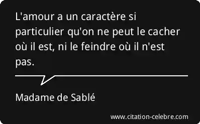 L'amour a un caractère si particulier qu'on ne peut le cacher où il est, ni le feindre où il n'est pas.