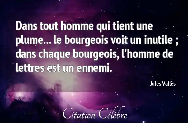 Dans tout homme qui tient une plume... le bourgeois voit un inutile ; dans chaque bourgeois, l'homme de lettres est un ennemi.