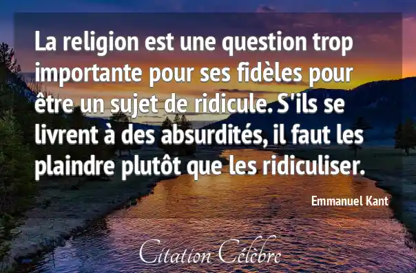 La religion est une question trop importante pour ses fidèles pour être un sujet de ridicule. S'ils se livrent à des absurdités, il faut les plaindre plutôt que les ridiculiser.