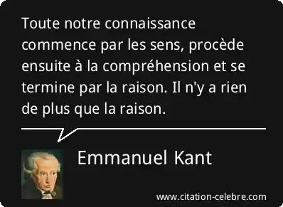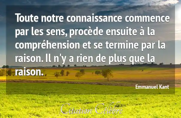 Toute notre connaissance commence par les sens, procède ensuite à la compréhension et se termine par la raison. Il n'y a rien de plus que la raison.