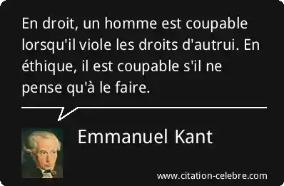En droit, un homme est coupable lorsqu'il viole les droits d'autrui. En éthique, il est coupable s'il ne pense qu'à le faire.