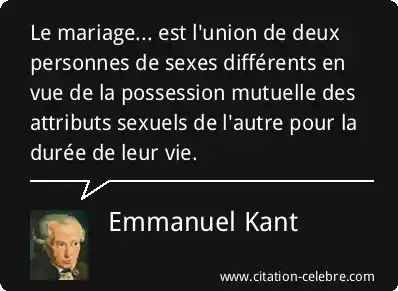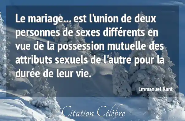 Le mariage... est l'union de deux personnes de sexes différents en vue de la possession mutuelle des attributs sexuels de l'autre pour la durée de leur vie.