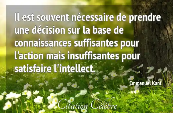 Il est souvent nécessaire de prendre une décision sur la base de connaissances suffisantes pour l'action mais insuffisantes pour satisfaire l'intellect.