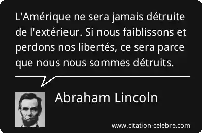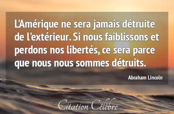 L'Amérique ne sera jamais détruite de l'extérieur. Si nous faiblissons et perdons nos libertés, ce sera parce que nous nous sommes détruits.