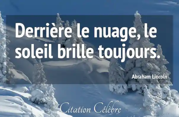 Cette citation, « Derrière le nuage, le soleil brille toujours », exprime une idée fondamentale d'espoir et de persévérance. Elle utilise une image météorologique simple pour illustrer une réalité psychologique : même lorsque vous traversez des moments difficiles (symbolisés par le « nuage »), l'optimisme et la lumière (le « soleil ») sont toujours présents, bien que temporairement cachés. Le « toujours » souligne la nature permanente et immuable de cette source de lumière intérieure.