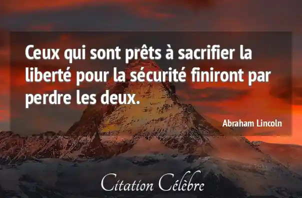 Ceux qui sont prêts à sacrifier la liberté pour la sécurité finiront par perdre les deux.