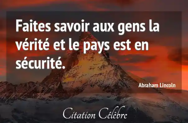 Faites savoir aux gens la vérité et le pays est en sécurité.