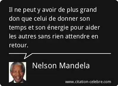 Cette citation est largement attribuée à Nelson Mandela, bien qu'il soit difficile de déterminer sa date et son lieu d'énonciation précis. Elle s'inscrit parfaitement dans son idéologie de service et de réconciliation, développée notamment après sa libération et son accès à la présidence de l'Afrique du Sud. Elle est souvent utilisée pour illustrer son engagement personnel pour l'humanité.