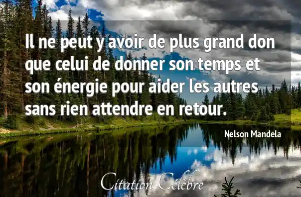 Cette puissante déclaration de Nelson Mandela met en lumière l'idée que le geste le plus noble qu'une personne puisse faire est de se consacrer à l'aide d'autrui. Le "plus grand don" n'est pas matériel ; il réside dans le sacrifice personnel de son temps et de son énergie, deux ressources précieuses et non renouvelables. L'essence de cette phrase repose sur le concept de l'altruisme pur : donner sans aucune attente de contrepartie, de reconnaissance, ou de bénéfice personnel.