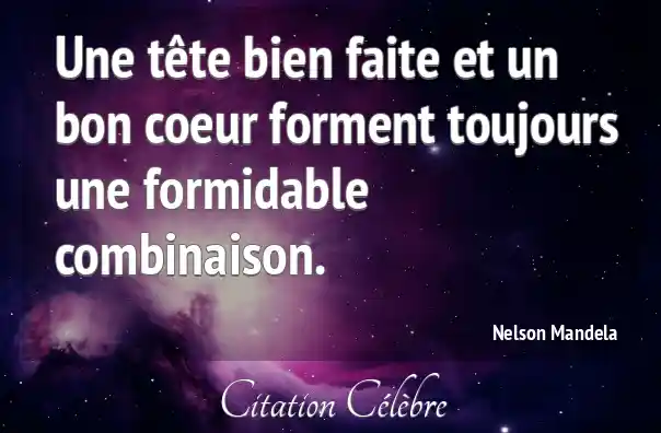 Une tête bien faite et un bon coeur forment toujours une formidable combinaison.