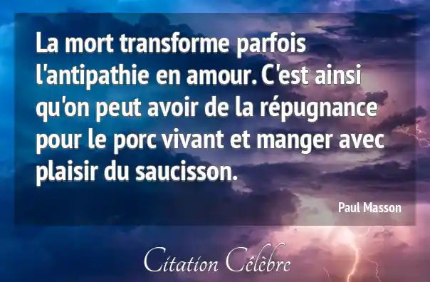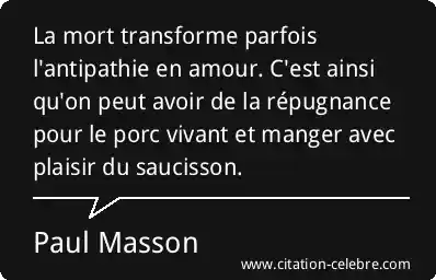 La mort transforme parfois l'antipathie en amour. C'est ainsi qu'on peut avoir de la répugnance pour le porc vivant et manger avec plaisir du saucisson.