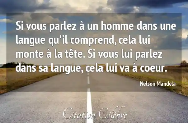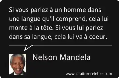 Si vous parlez à un homme dans une langue qu'il comprend, cela lui monte à la tête. Si vous lui parlez dans sa langue, cela lui va à coeur.