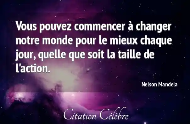 Vous pouvez commencer à changer notre monde pour le mieux chaque jour, quelle que soit la taille de l'action.