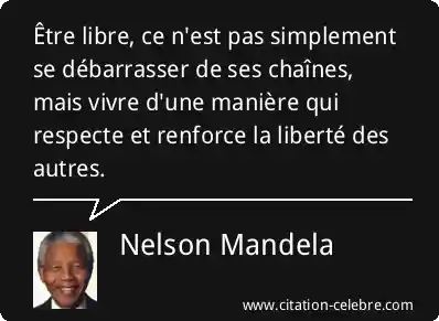 Être libre, ce n'est pas simplement se débarrasser de ses chaînes, mais vivre d'une manière qui respecte et renforce la liberté des autres.