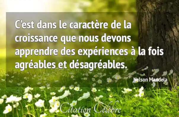 C'est dans le caractère de la croissance que nous devons apprendre des expériences à la fois agréables et désagréables.