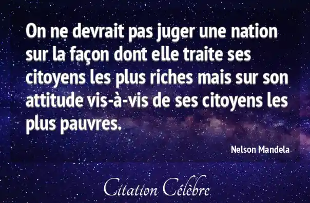 On ne devrait pas juger une nation sur la façon dont elle traite ses citoyens les plus riches mais sur son attitude vis-à-vis de ses citoyens les plus pauvres.