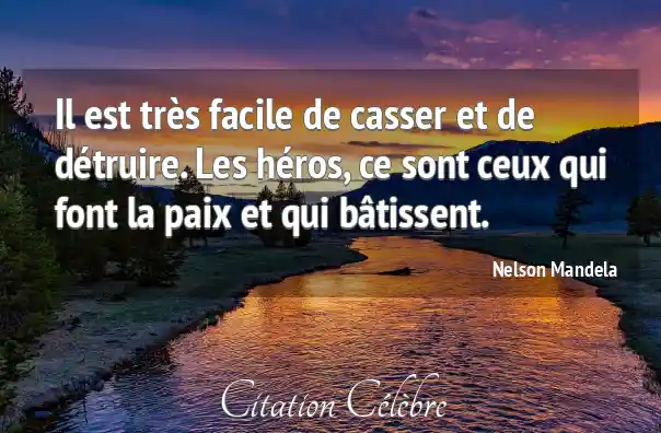 Il est très facile de casser et de détruire. Les héros, ce sont ceux qui font la paix et qui bâtissent.