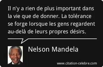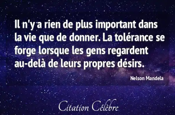 Il n'y a rien de plus important dans la vie que de donner. La tolérance se forge lorsque les gens regardent au-delà de leurs propres désirs.