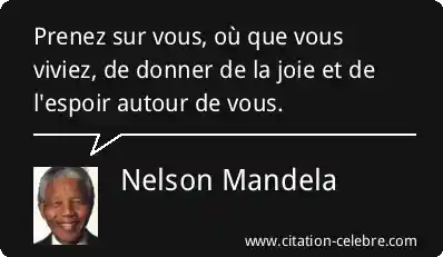Prenez sur vous, où que vous viviez, de donner de la joie et de l'espoir autour de vous.