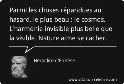 Parmi les choses répandues au hasard, le plus beau : le cosmos. L'harmonie invisible plus belle que la visible. Nature aime se cacher.