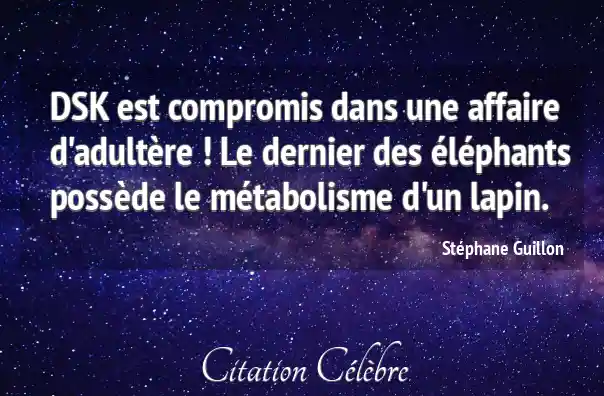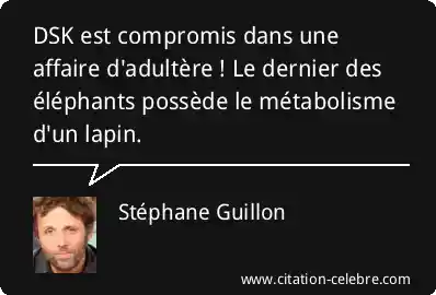 DSK est compromis dans une affaire d'adultère ! Le dernier des éléphants possède le métabolisme d'un lapin.