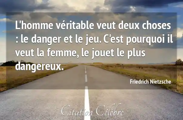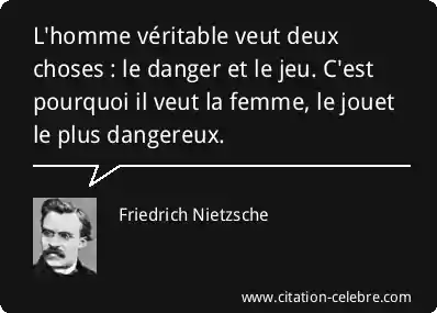 L'homme véritable veut deux choses : le danger et le jeu. C'est pourquoi il veut la femme, le jouet le plus dangereux.