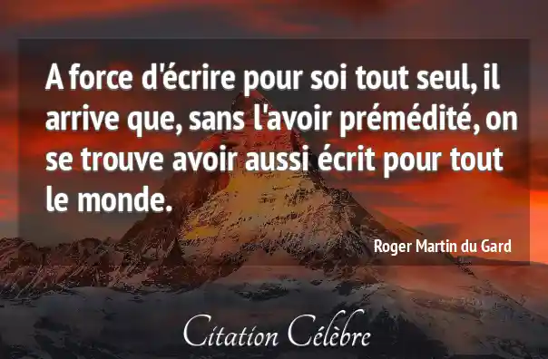 A force d'écrire pour soi tout seul, il arrive que, sans l'avoir prémédité, on se trouve avoir aussi écrit pour tout le monde.