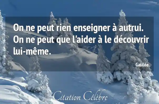 On ne peut rien enseigner à autrui. On ne peut que l'aider à le découvrir lui-même.