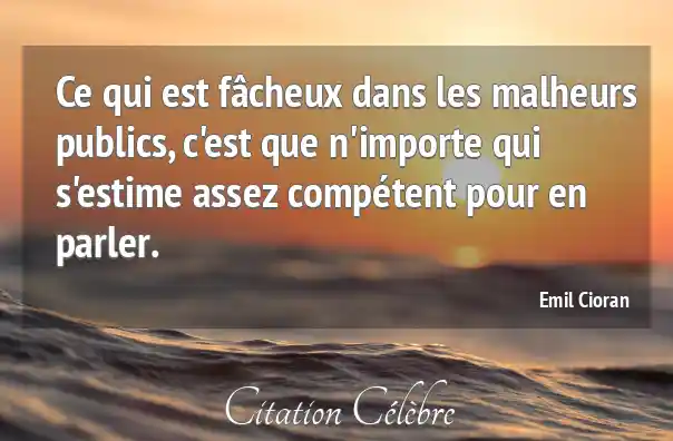 Ce qui est fâcheux dans les malheurs publics, c'est que n'importe qui s'estime assez compétent pour en parler.