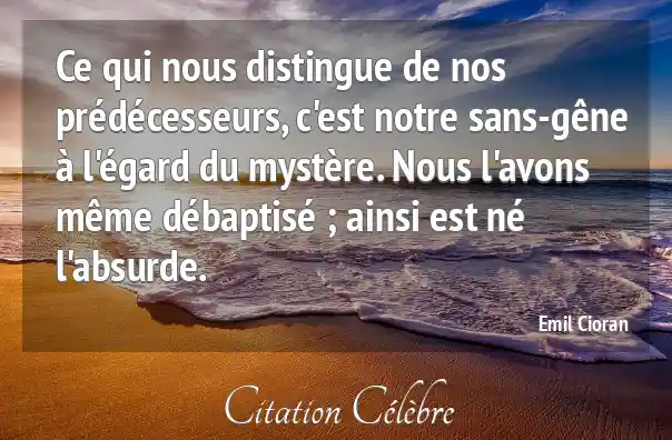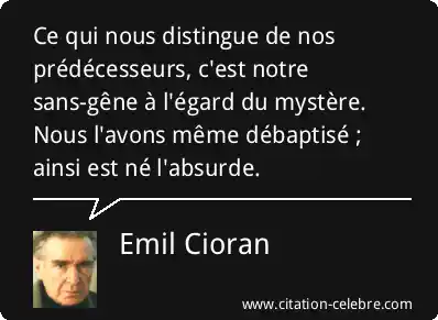 Ce qui nous distingue de nos prédécesseurs, c'est notre sans-gêne à l'égard du mystère. Nous l'avons même débaptisé ; ainsi est né l'absurde.